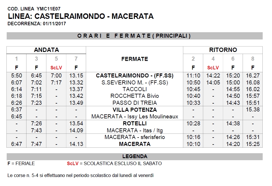 Per linee e informazioni su bacino di MACERATA tel. 800 037 737 e sito