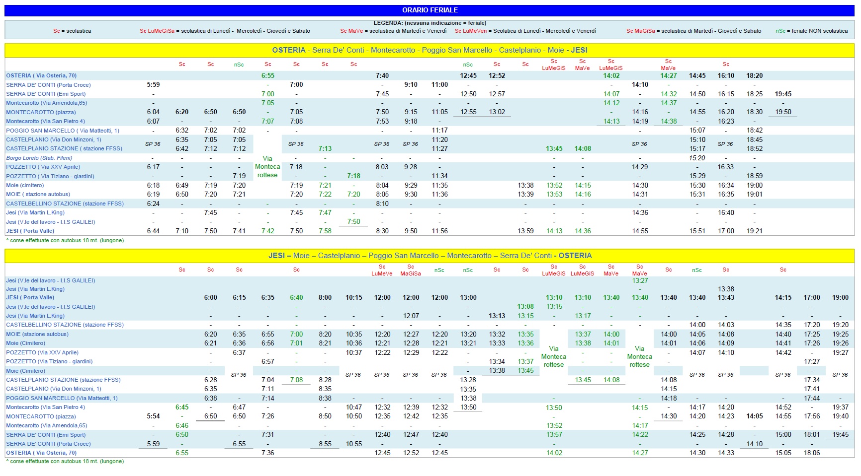 Orari pullman Jesi - Moie - Castelplanio - Montecarotto - Serra de' Conti - Osteria